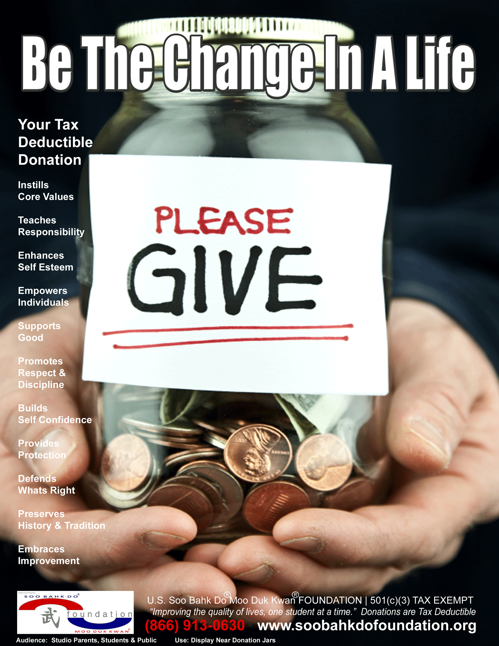 - Make a tax-deductible online donation to the U.S. Soo Bahk Do Moo Duk Kwan FOUNDATION